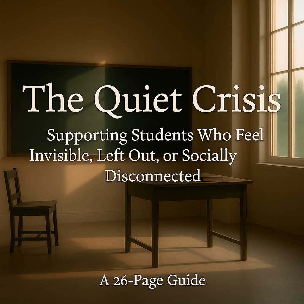 The Quiet Crisis is a 26-page, psychology-driven guide designed for educators who recognize the silent struggles unfolding in their classrooms. This resource goes beyond classroom management to explore relational presence, offering emotionally intelligent tools to identify and support students who feel invisible, disconnected, or left out—without labeling them or forcing connection. Through narrative insight, reflective prompts, and practical strategies, it helps teachers foster true belonging through small, meaningful moments, emotionally literate rituals, and inner awareness. Whether you're navigating a crowded room or quietly noticing a student in pain, this guide helps you respond with presence, not pressure.